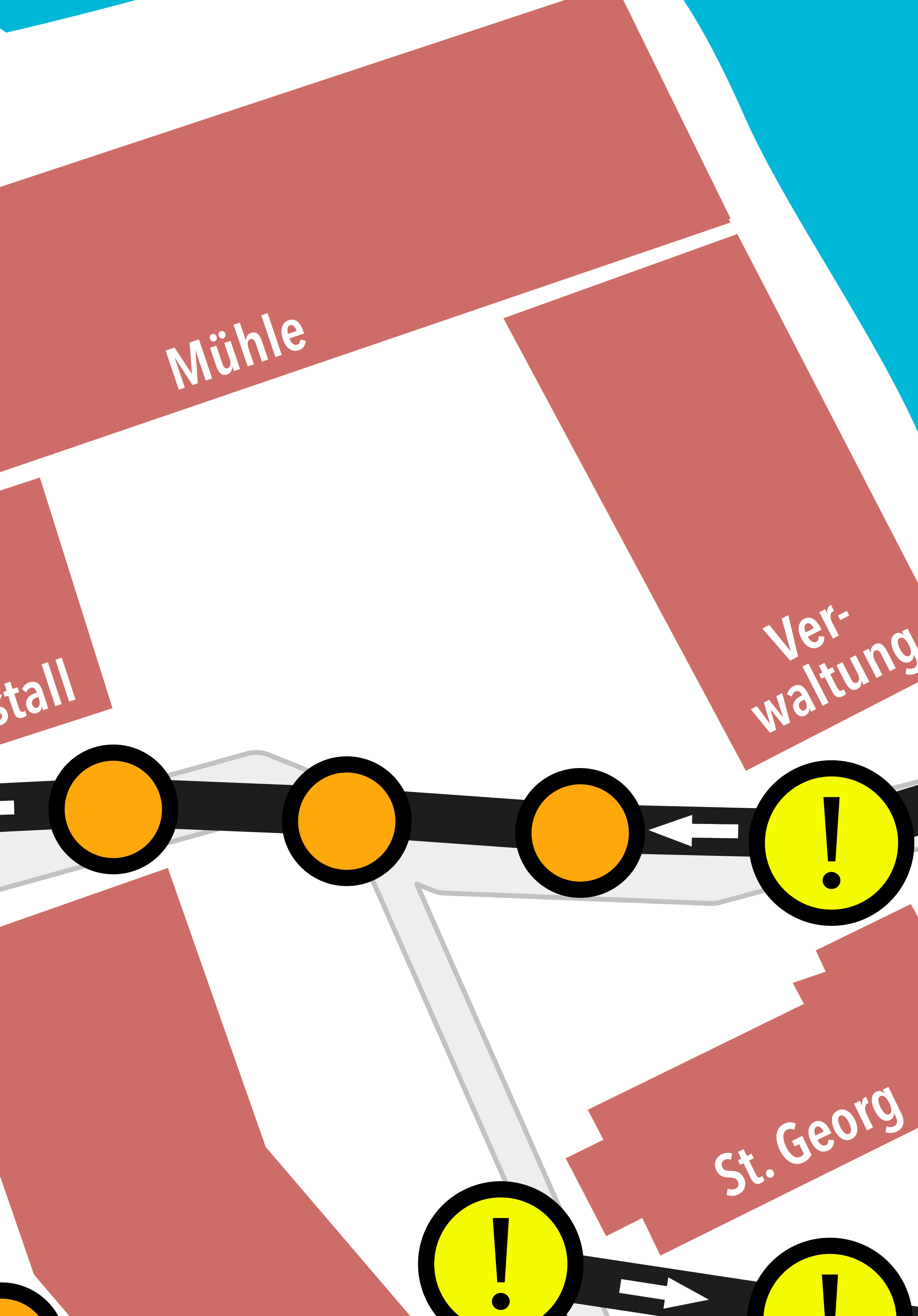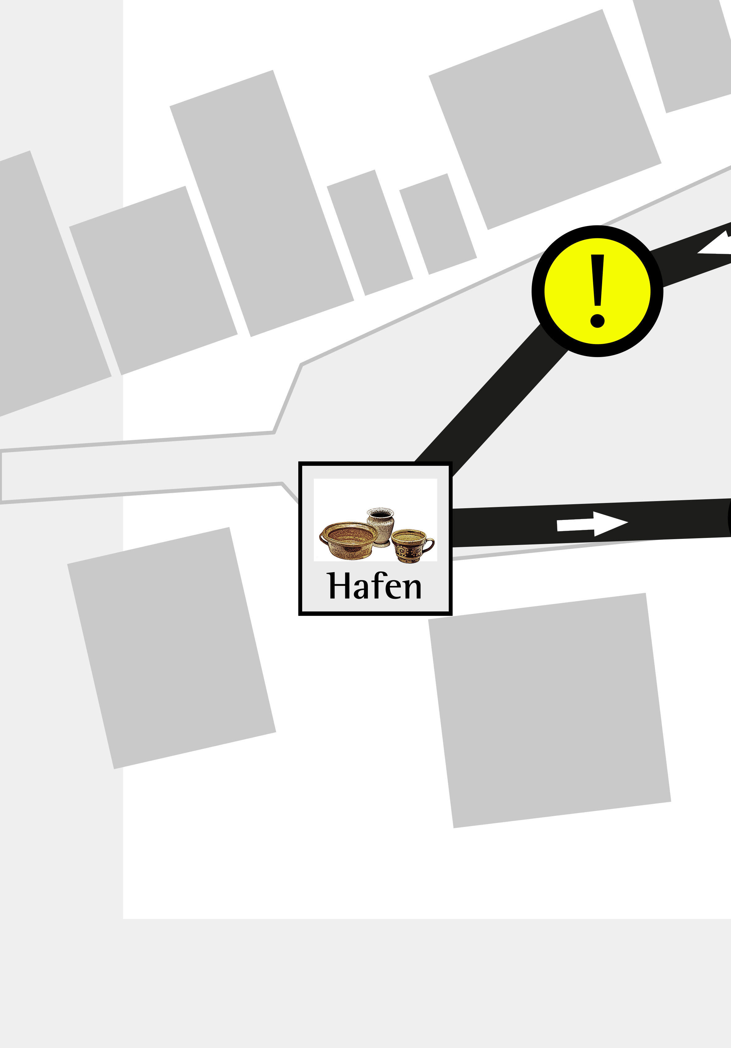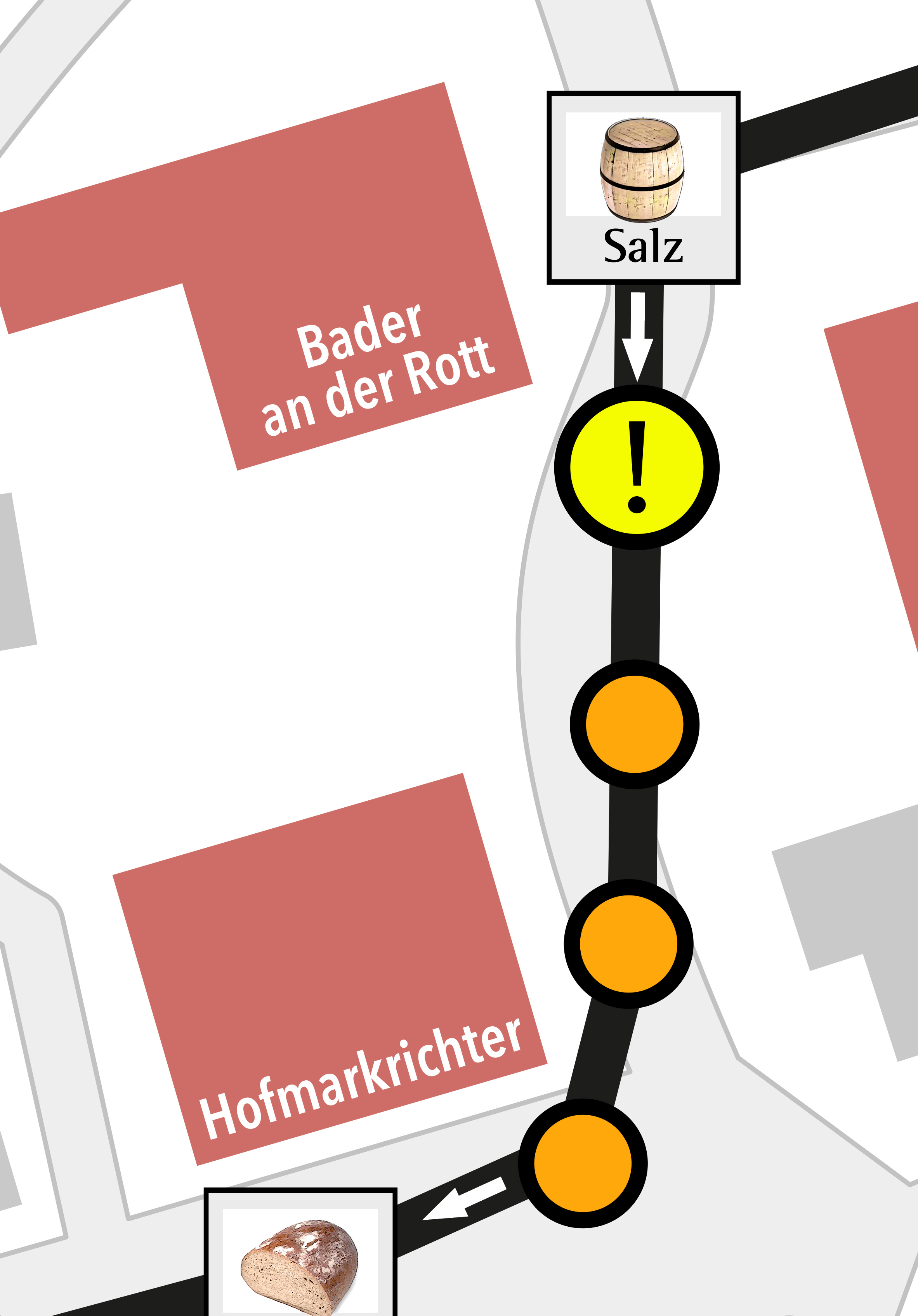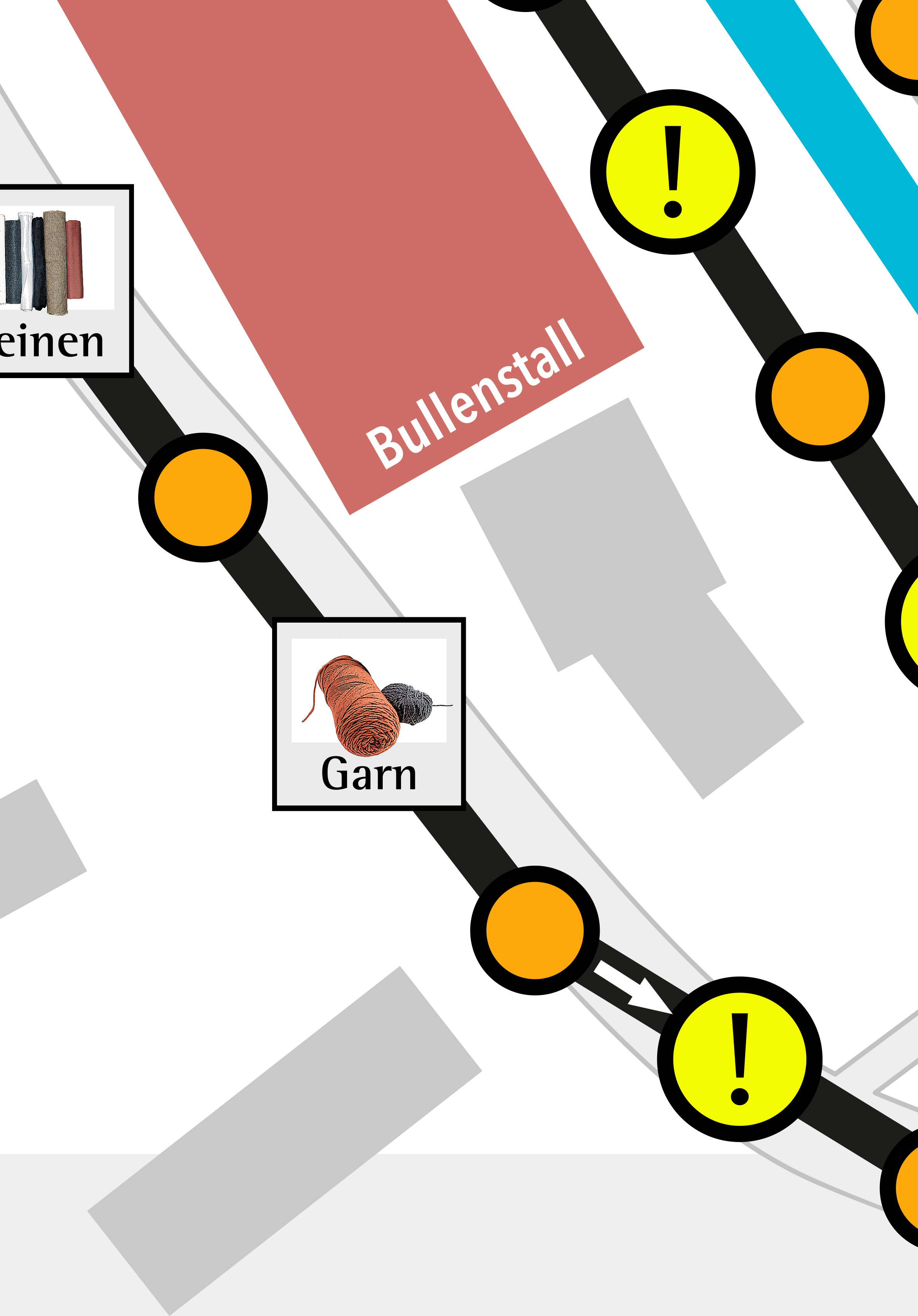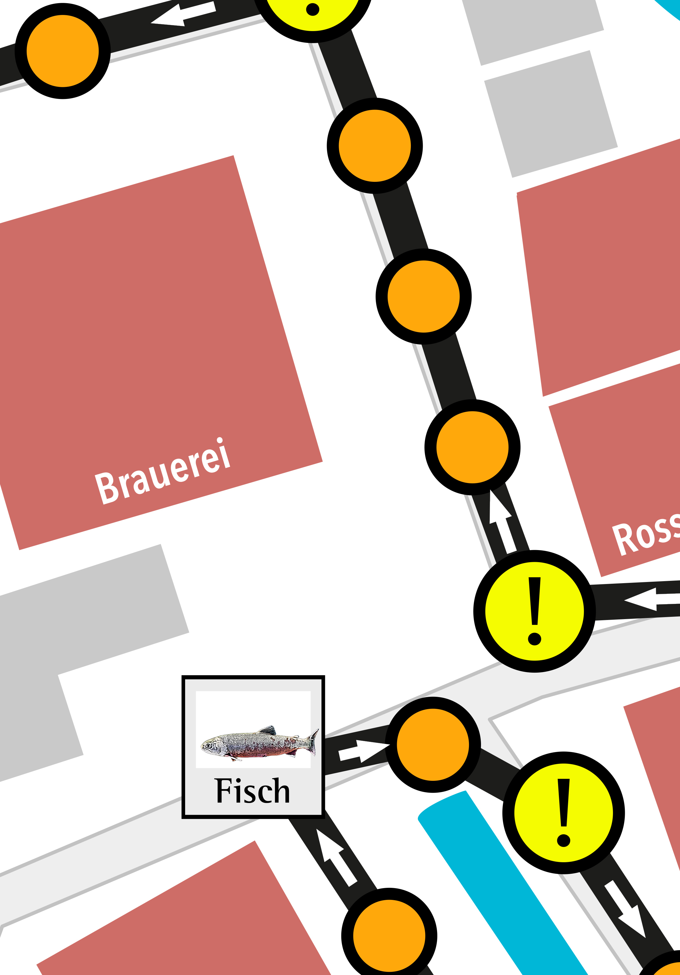 • Die Route ist ein „Markt-Rundgang“, die an grafisch gesetzten „Ständen“ vorbeiführt;