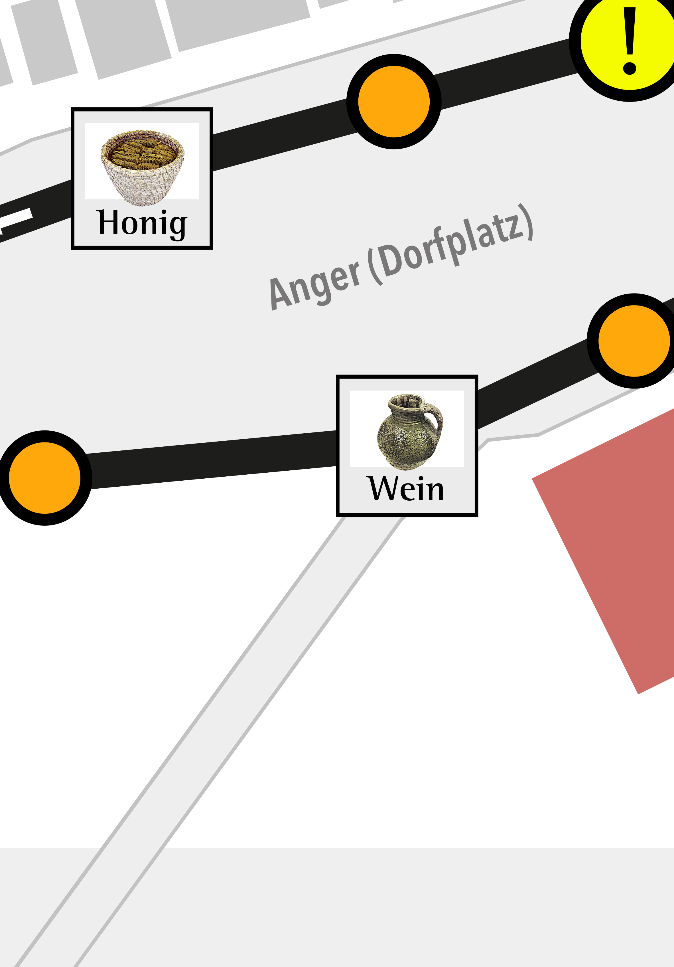 die „Stände“ sind jeweils markiert mit „Waren“ - jenen, die es dort zu kaufen/sammeln gibt.